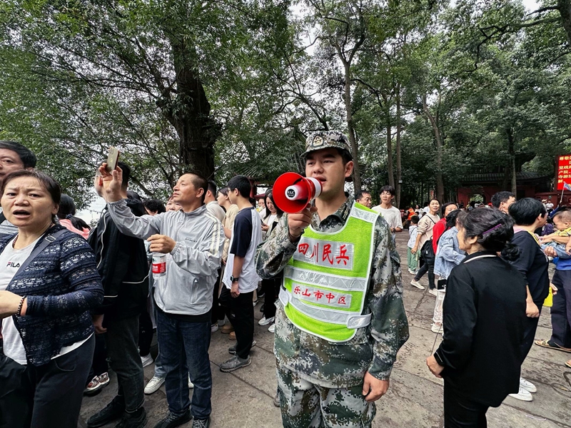 受乐山市中区武装部指派,beat365预备役民兵连51名民兵参加“国庆黄金周”大佛景区联合执勤,全力协助相关部门完成景区治安管控及其它综合勤务。