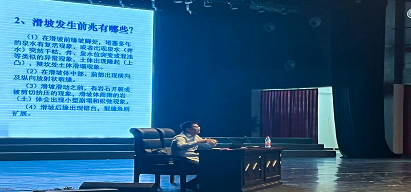 黄文工程师用幽默风趣的语言,结合逼真的图片及视频演示,向同学们深入浅出地讲述了地质灾害的基本概念、如何判定地质灾害的危险性、面临地质灾害时如何处置等几方面内容。