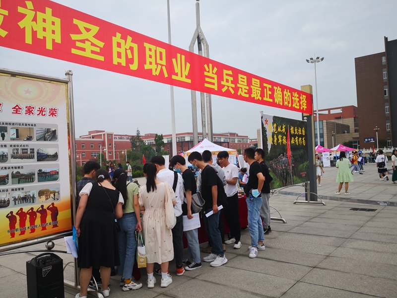 学院武装部在邀请上级兵役机关到校现场进行征兵政策宣讲的基础上,结合毕业生招聘会、推荐会,开展征兵政策咨询活动,建立相应宣传平台。与此同时,设立大学生参军政策咨询点,组织征兵工作人员、大学生退役士兵,一对一提供政策咨询。