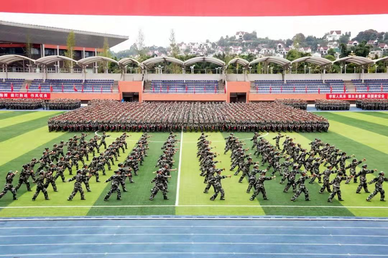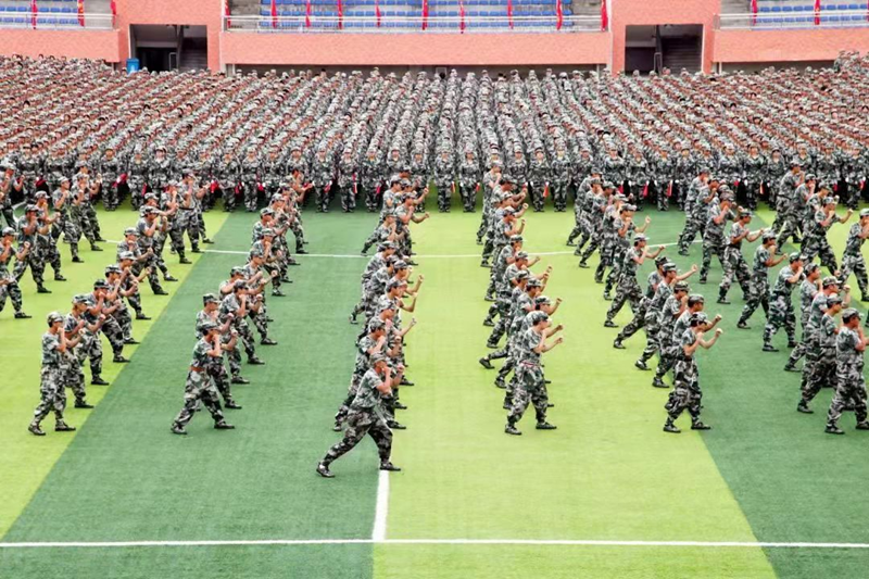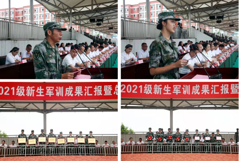 军训成果汇报暨总结表彰会进行了分列式、擒敌拳、应急救护、战术推演及大型军艺方队展示等表演。会上对八个先进连队和450名优秀学员进行了通报表彰。