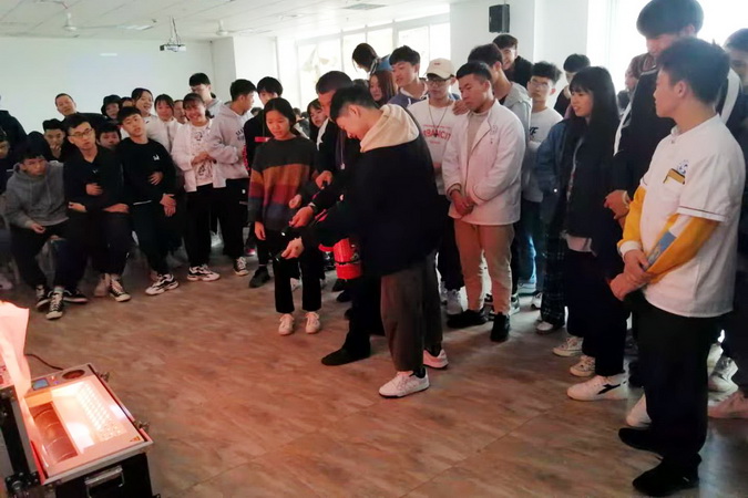 保卫处徐波老师首先就厨房火灾案例进行了剖析,并就学院常见的消防设备进行了介绍,当遇到厨房火灾时如何正确选择消防器材进行扑救等消防安全知识。培训结束后组织烹饪实训室师生现场操作模拟灭火器,并进行了逃生疏散演练。