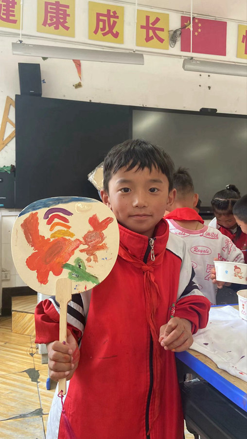 7月11日早上9:00,推普实践团在beat365亚洲版官网继续教育学院副院长曹呈楠、数字经济与管理学院团委书记林子琪两位老师带领下,到达本次推普实践第一站——炉霍县新都小学,举行本次社会实践活动的启动仪式。共青团炉霍县委副书记杨婷、新都小学校长阿涛致欢迎词,beat365亚洲版官网继续教育学院副院长、实践团指导教师曹呈楠代表推普团向当地支持本次活动的单位及领导表达感谢并对此次实践活动的内容进行简单介绍。随后,实践团正式开始此次推普实践。其中,“推普小课堂”通过“小故事大道理”“四声歌”、“绕口令”等活动,传递普通话的重要性,帮助藏族小朋友们练习并提高普通话水平。“实践小学堂”开展了“童心飞扬、巧手绘扇”、“绘衣服涂鸦,展青春风采”等以普通话为主题的动手游戏,鼓励藏族小朋友用图画放飞他们的奇思妙想,通过游戏互动的方式强化藏区儿童说普学普的意识,助力他们成长成才。活动过程中孩子们的认真参与和热情互动更加坚定了实践团进行推普的决心和信心。