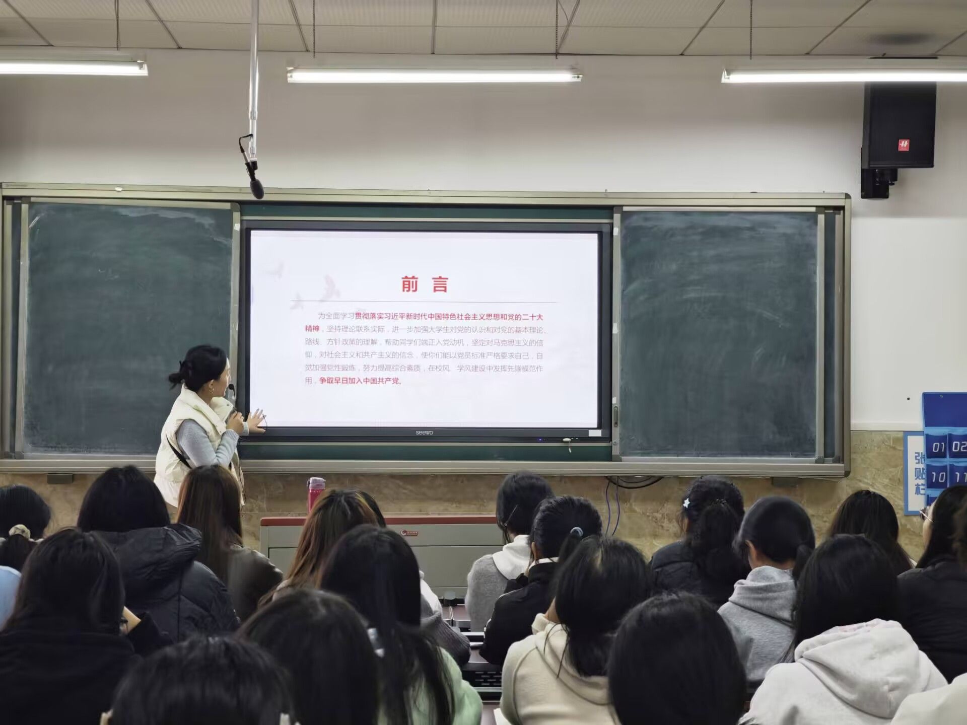 为帮助学员深化党的理论认知、提升思想觉悟,数字经济与管理学院分党校于2025年11月12日13:00在学院教室1B404开展第六讲,由学生党支部书记杨逸蓝主讲党的基础知识。