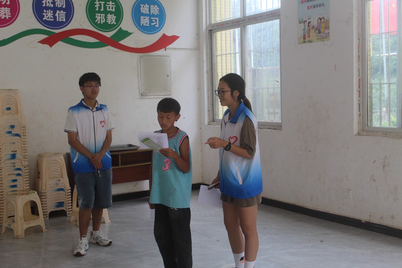 7月10日团队全体成员深入马边彝族自治县光辉村,在村副支书毛英的协助下,通过访谈交流、问卷调查等方式,了解村民们普通话的掌握情况,积极为当地的孩子们进行了推普。此外,同学们还积极开展志愿服务活动,对光辉村街道进行了大扫除。