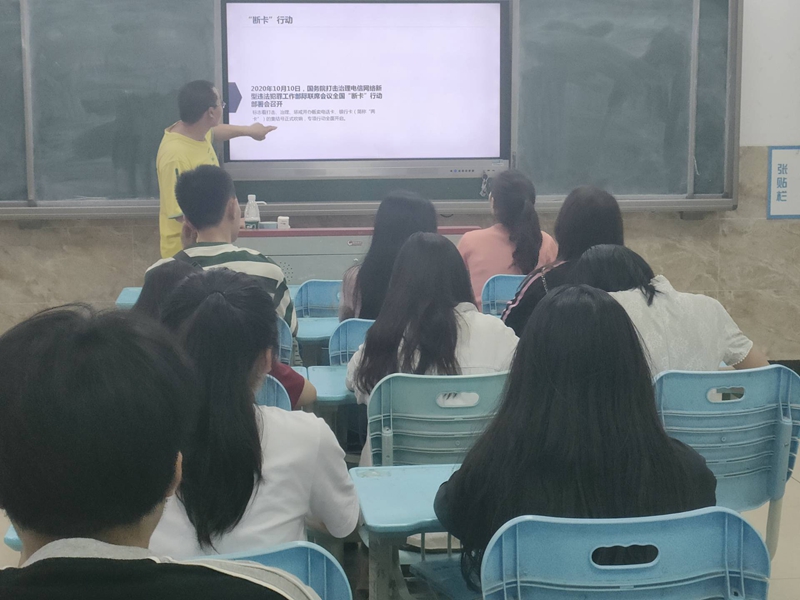 为打击“两卡”违法犯罪行为,共同防范电信网络诈骗犯罪,让同学们提高警惕,坚持预防为先,谨防诈骗。beat365亚洲版官网数字经济与管理学院于2024年5月19日晚上在教室开展青春护航.共建无诈校园主题班会。