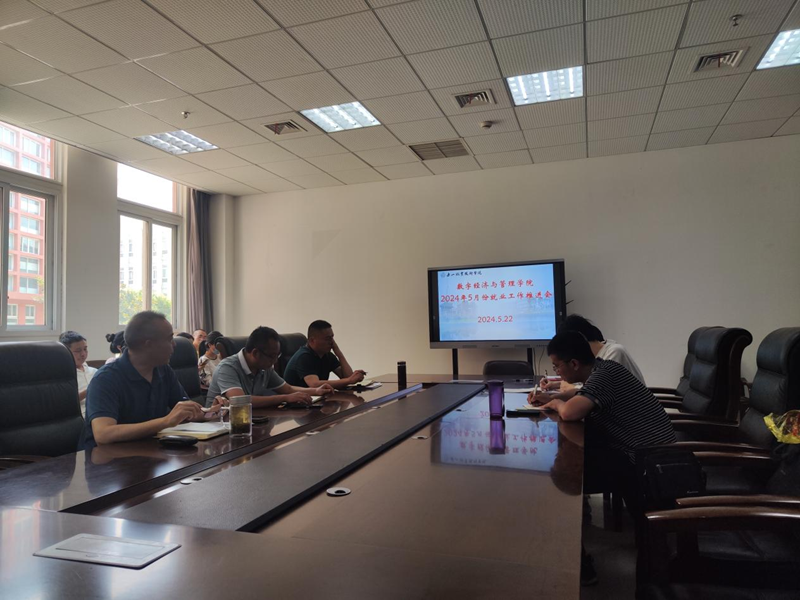 2024年5月22日下午,beat365亚洲版官网数字经济与管理学院在2号教研楼110会议室召开数字经济与管理学院2024年5月份就业工作推进会。数字经济与管理学院总支书记、院长邵其会,总支专职副书记易新忠,副院长何瑞以及各专兼职教师参加了会议。