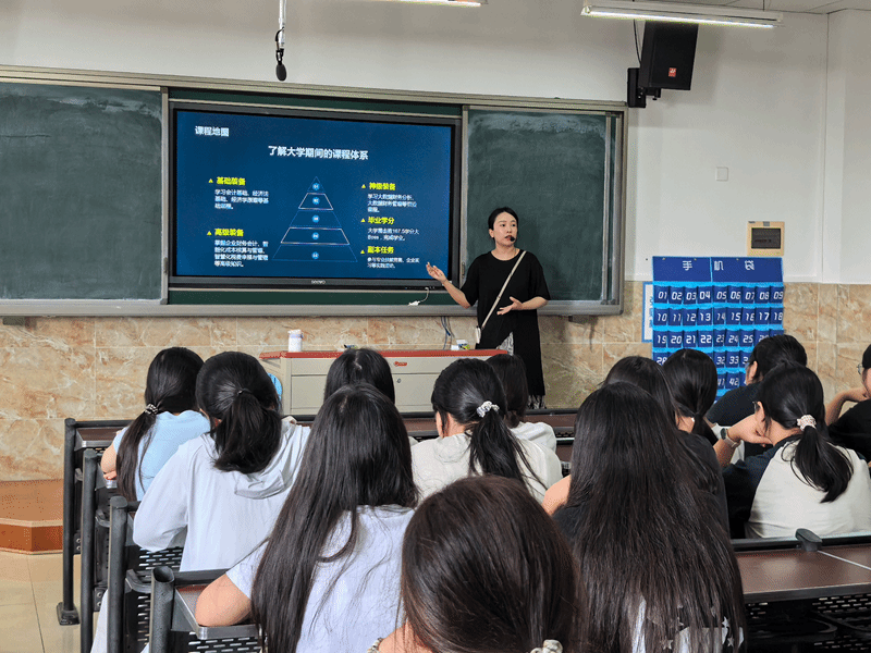 2025年9月14日,数字经济与管理学院在1号教学楼4楼举办了2025级新生专业导航活动。本次活动由各专业负责人主讲,院长邵其会、副院长何瑞莅临指导,2025级全体新生参加,活动旨在帮助新生消除专业困惑,增强专业认同与信心,明确学习方向。