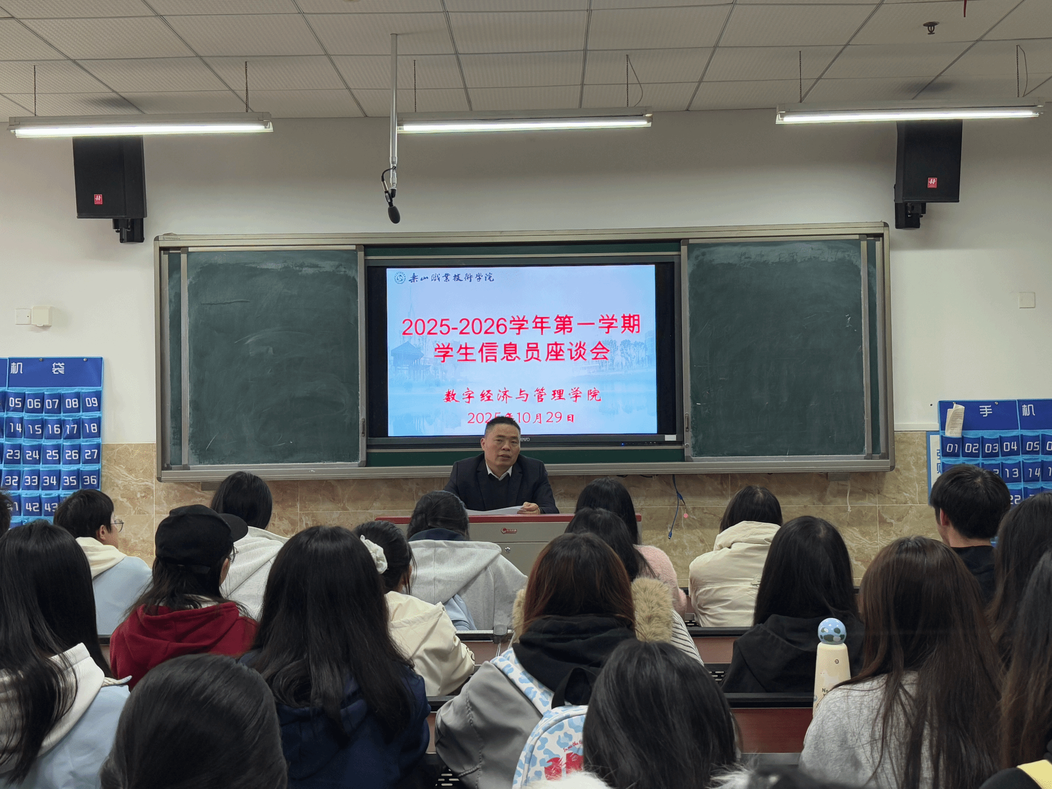 2025年10月29日中午,beat365亚洲版官网数字经济与管理学院在教学楼1B404召开10月教学督导信息员座谈会,数字经济与管理学院副院长何瑞、督导干事刘佳敏及各班信息员参会。