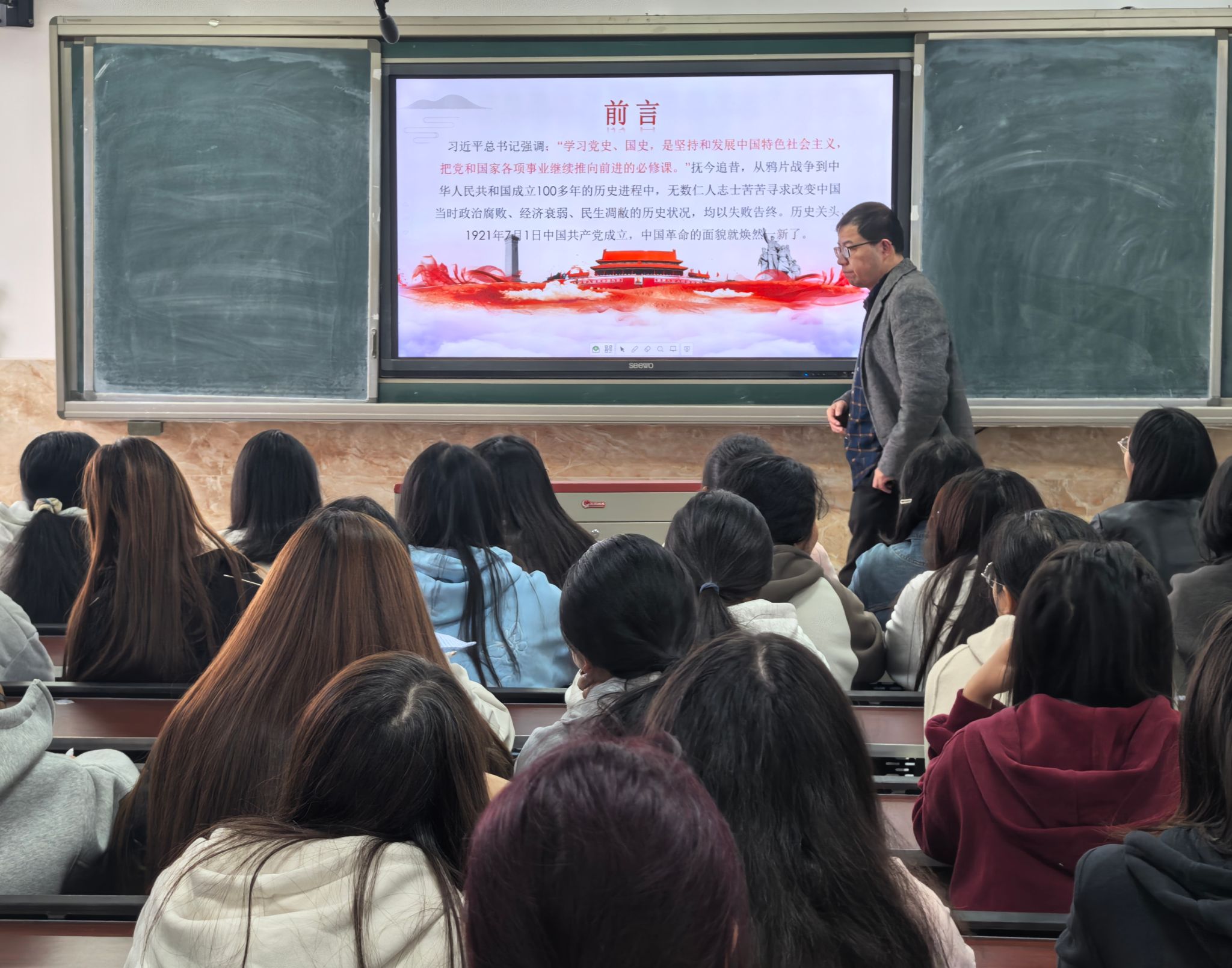 围绕“当代大学生的历史使命”和“不忘初心,永远跟党走”两个部分组成。李敏老师首先从党史方面向同学们讲述,有助于同学们了解历史;随后讲解共产党的初心与使命;同时,对同学们提出期望:青年强则国强,青年兴则国兴。将个人理想融入国家发展和民族复兴的宏伟蓝图,在时代洪流中勇担重任、砥砺前行。