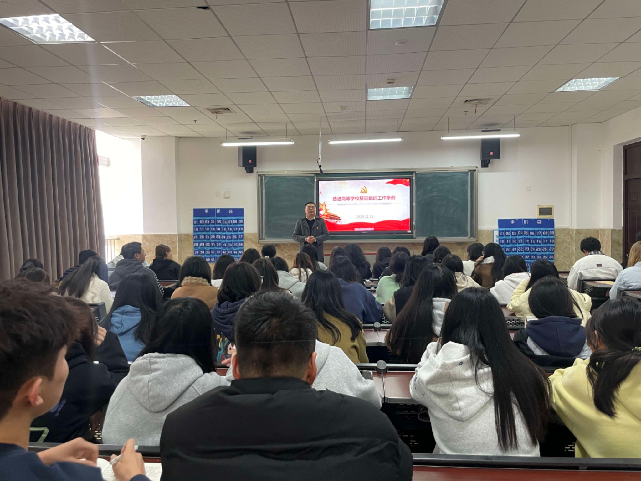 2025年11月11日中午13:00,数字经济与管理学院分党校2025年秋季培训班在1B404教室开展第由数字经济与管理学院党总支纪检委员教工一支部书记、副院长何瑞主讲学习高校基层组织工作条例”。