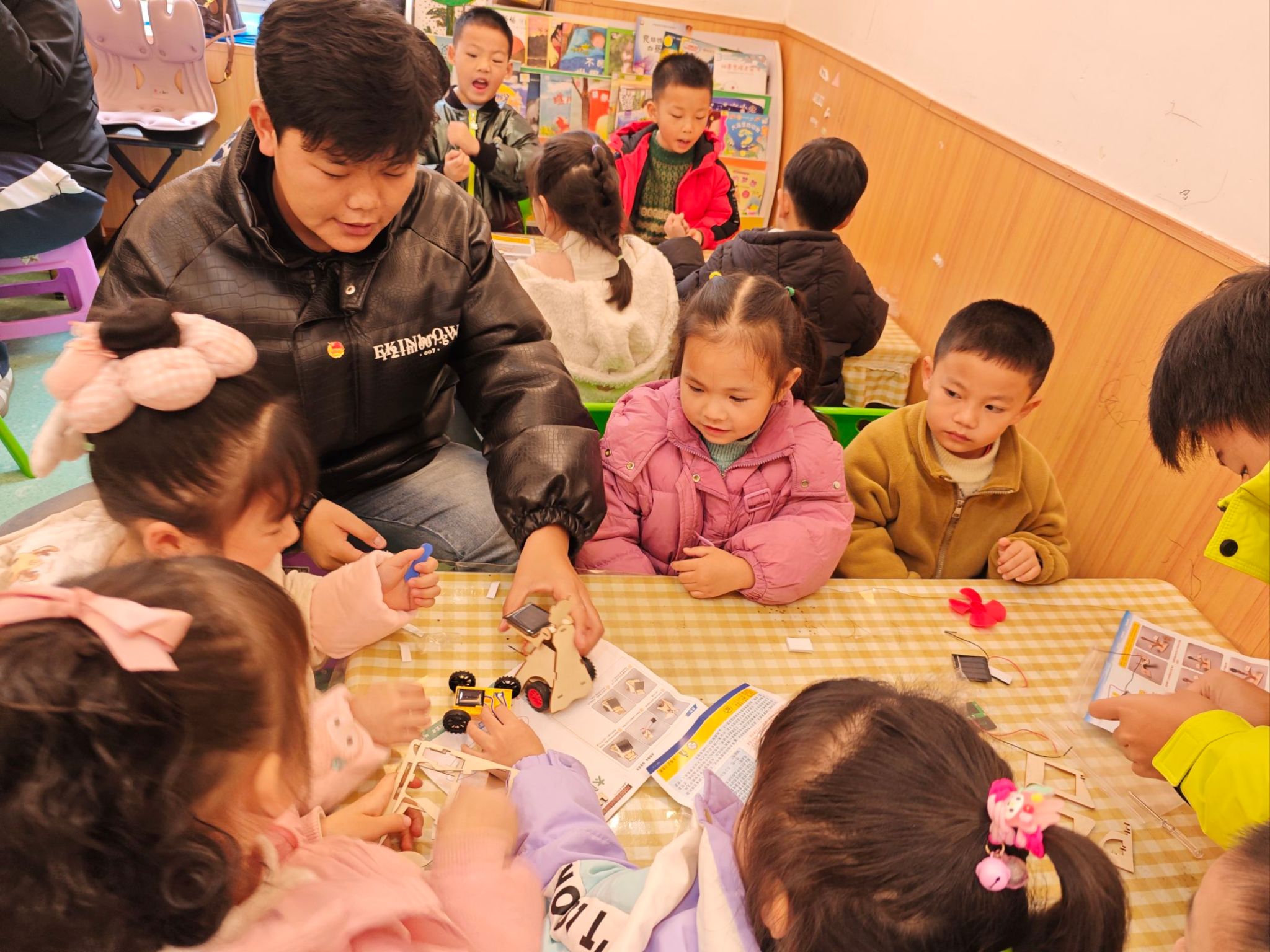 为持续激发小朋友们的科学兴趣、弘扬中华优秀传统文化,20251210日上午,新能源与材料学院“科普宣讲与文化传承”团队在党员教师邓茹、张艳琳、赵田丽的带领下,走进肖坝贝贝佳幼儿园,开展了一场融合科技启蒙与非遗体验的社会实践培训活动。