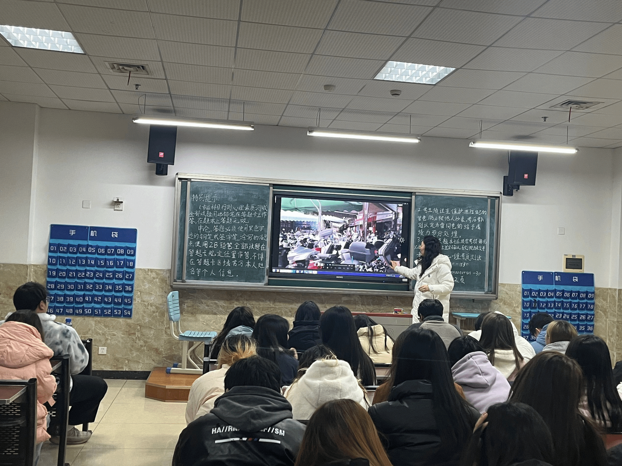 班会开始,先是对近期出现的校园卡外借的问题进行了通报,让同学们引以为戒,杜绝此类事件再次发生。然后用一个亲身从缅北诈骗窝点死里逃生的案例来讲述缅北“天堂”背后的真相,提升同学们的防骗意识,筑牢反诈防线。最后通过观看电瓶车安全视频,详细介绍电动车校园使用注意事项,包括充电安全、停放规范、骑行要求等。