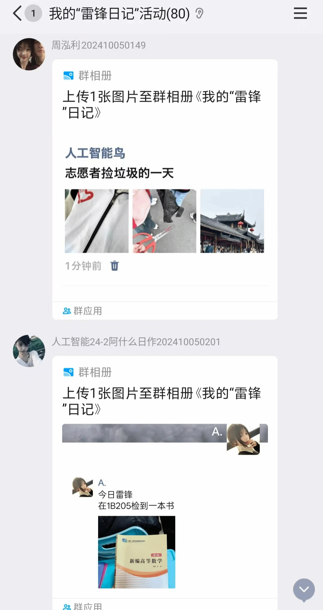 活动期间,同学们用镜头捕捉身边的雷锋身影。有的记录下帮助同学解决学习难题的瞬间,有的同学拍摄自己当志愿者帮助他人的瞬间,还有的定格了为他人指路、提供暖心帮助的温馨场景。这些照片生动展现了新时代大学生对雷锋精神的积极践行。