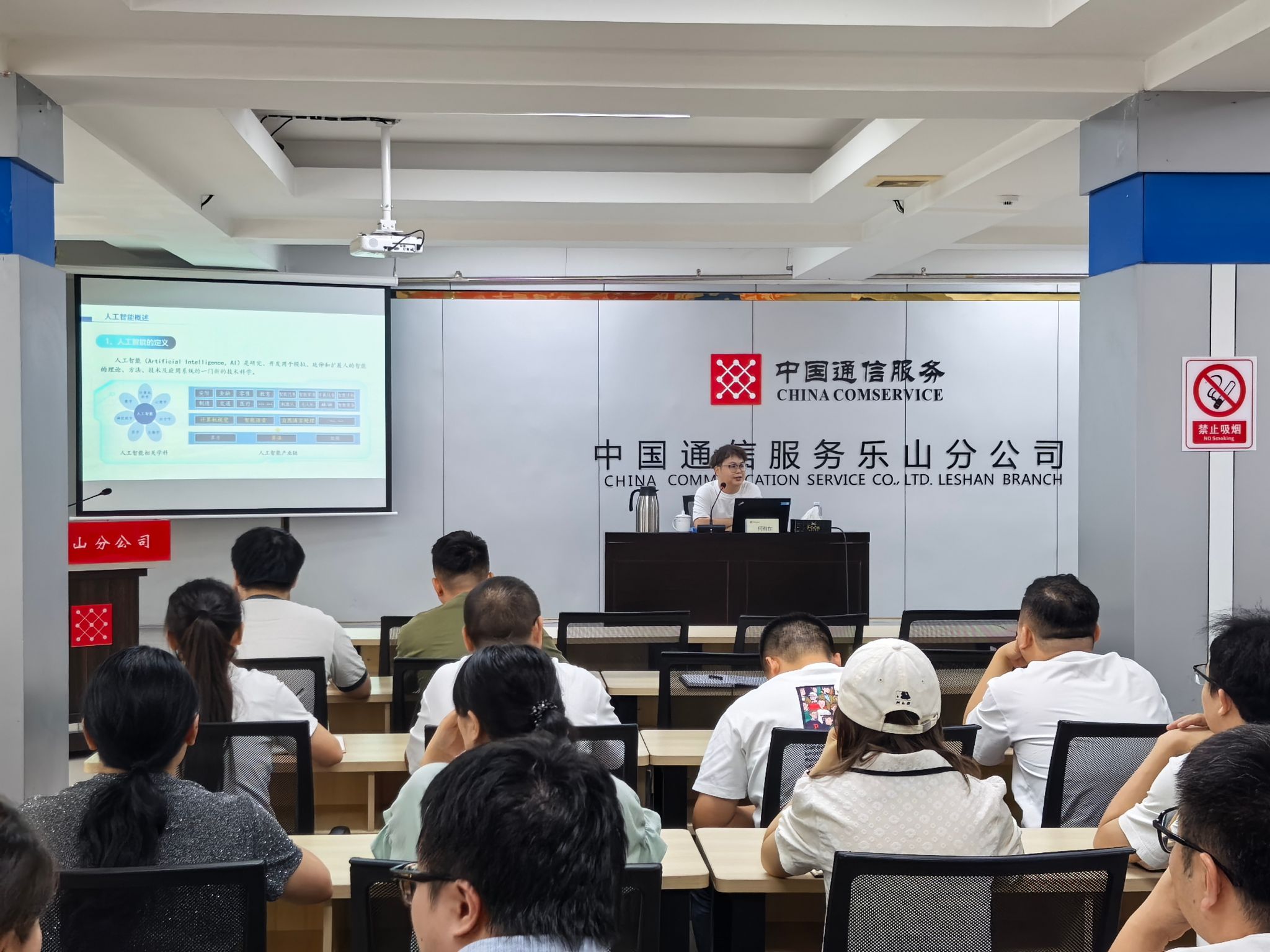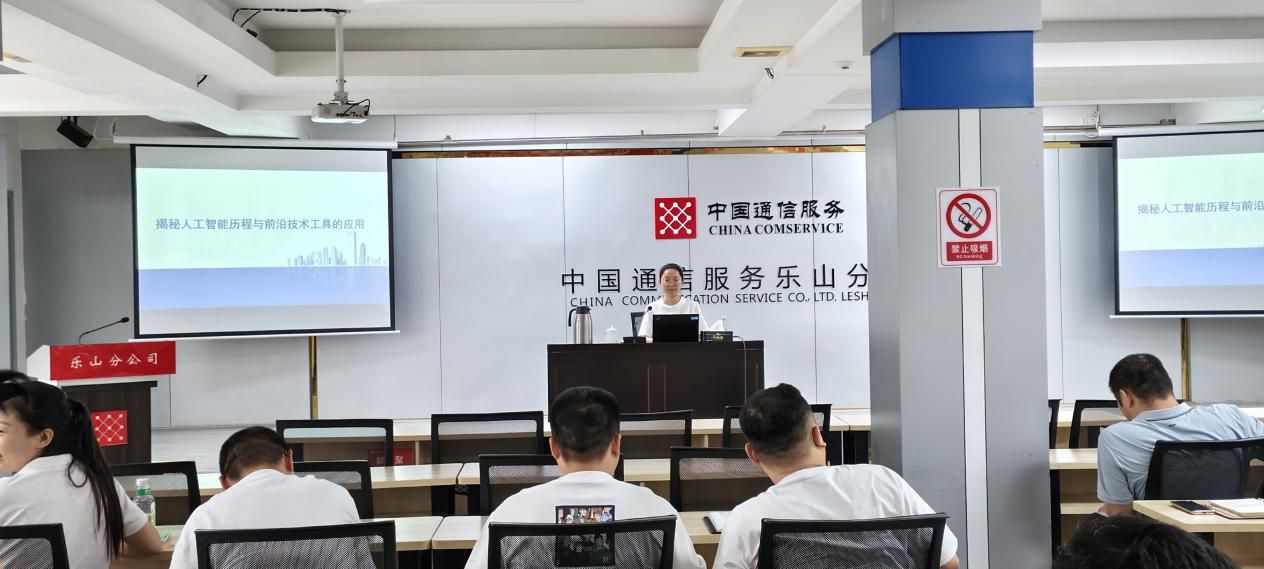 为助力企业数字化转型,提升员工对人工智能技术的认知与应用能力,2025年7月4日,我院受邀在四川省通信产业服务有限公司乐山分公司开展了一场主题为“揭秘人工智能历程与前沿技术工具的应用”的专题培训,培训时长为8学时。