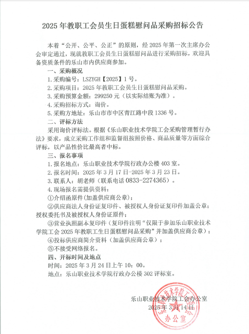 上一条:2025年教职工会员生日蛋糕慰问品采购招标结果公告
