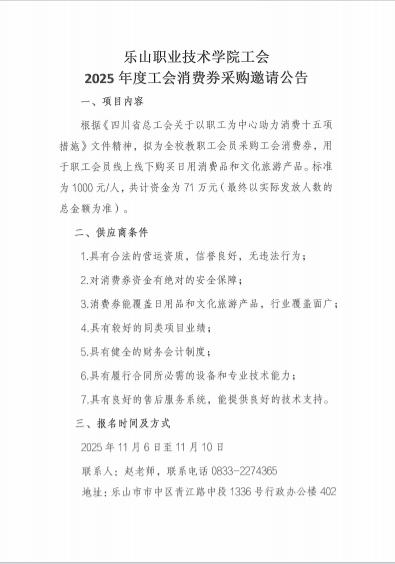 beat365亚洲版官网工会 2025年度工会消费券采购邀请公告