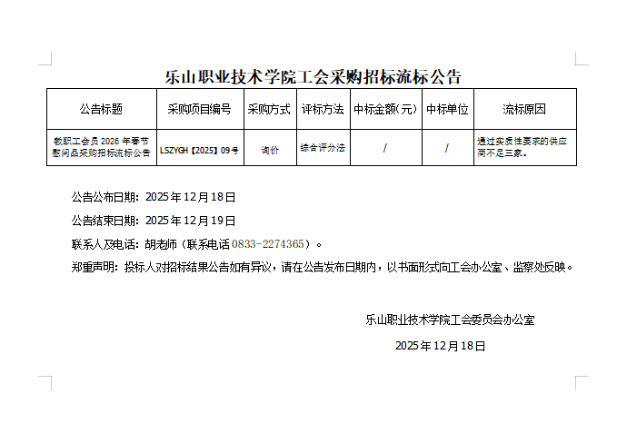 教职工会员2026年春节慰问品采购招标公告2