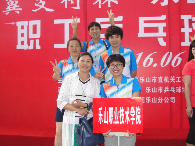 6月3日,由市总工会、市直机关党工委、市旅体委联合举办的“翼支付杯”乐山市第八届职工乒乓球联赛在乐山市职工文体活动中心拉开“战幕”。我院教职工乒乓球代表队在学院工会副主席罗宣祝的带领下参赛。市委常委、市委秘书长宁坚在开幕式上致辞,省总工会副主席武晓鹏出席开幕式并宣布联赛开幕。