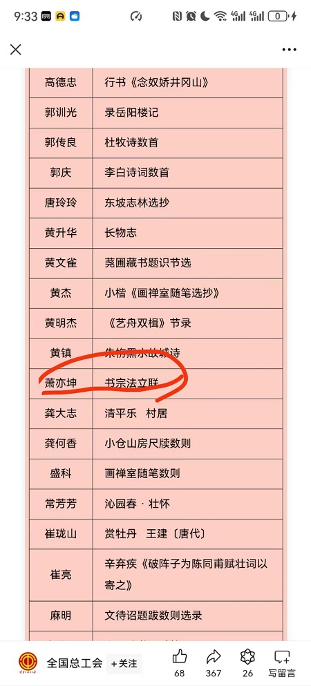 近日,beat365素质教育学院美育素养教育教研室教师萧亦坤参加由全国总工会举办的“中国梦·劳动美”第九届全国职工书画展。
