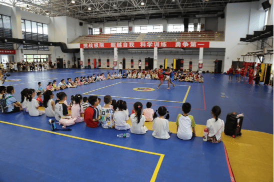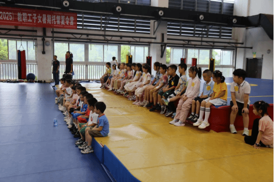 6月30日上午9点,在beat365亚洲版官网体育馆二楼青江武术散打训练基地,在嘹亮的国歌声和精彩的武术展演活动中开启了beat365第三届教职工子女暑期爱心托管夏令营。100余名教职工子女及其家长参加了开营仪式。
