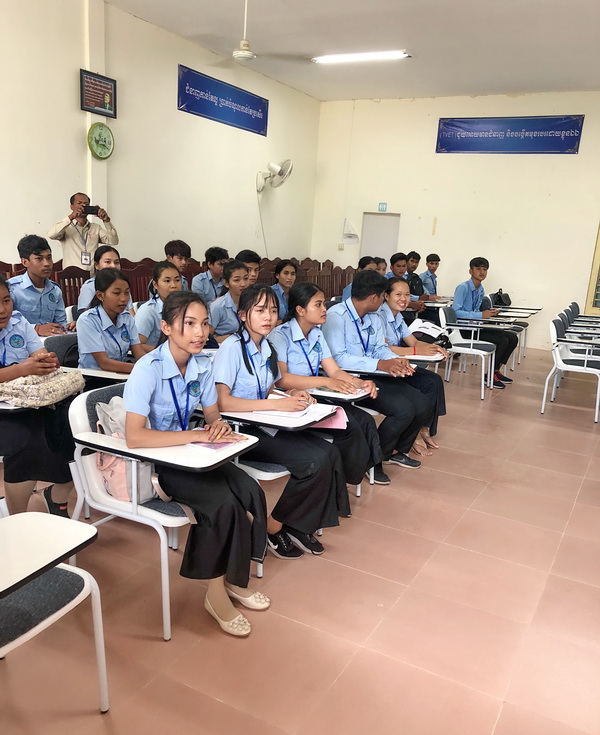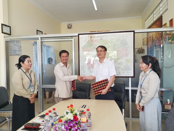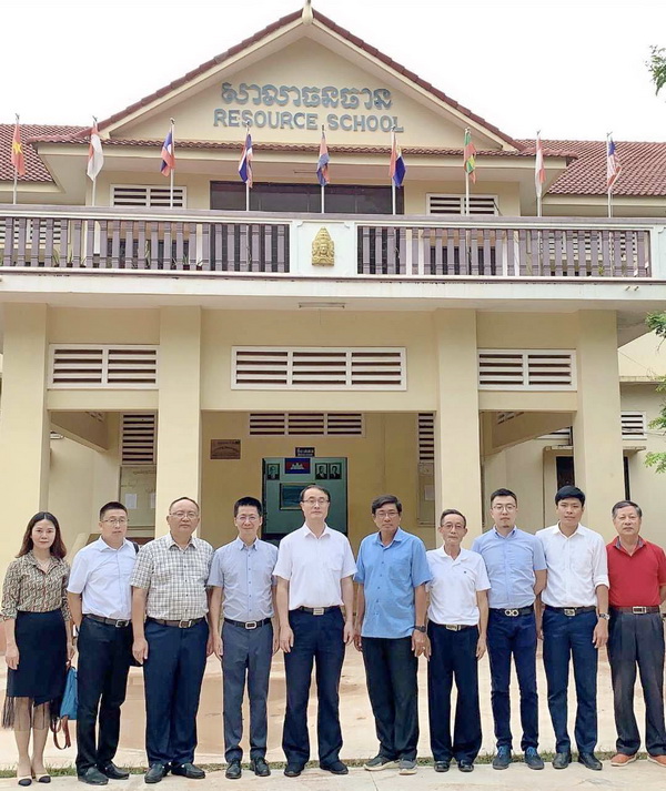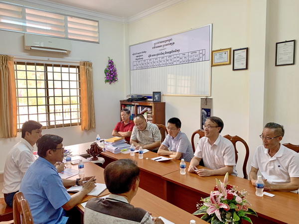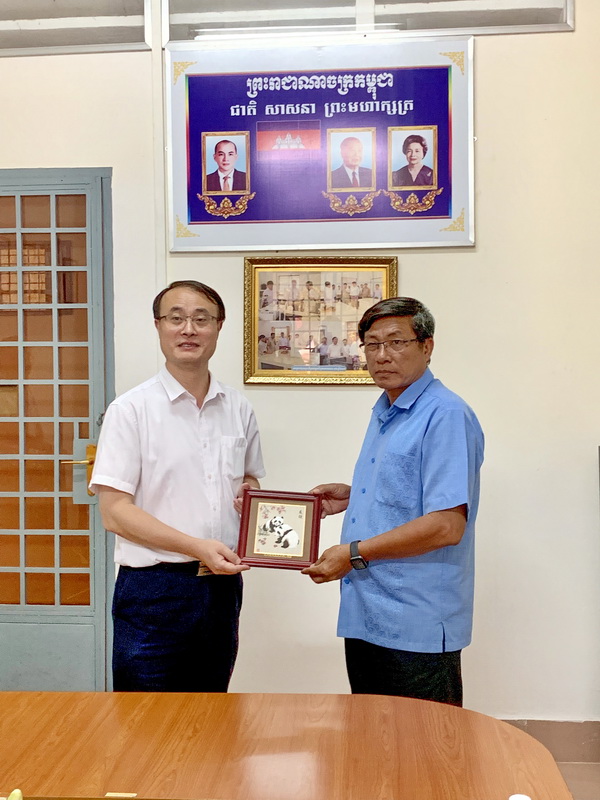 在柬埔寨期间,代表团一行首先访问了柬埔寨吴哥高中,与柬埔寨吴哥高中校长李·瓦纳克(Ly Vanank)举行交流会谈,吴哥高中是暹粒公办中学,学校占地近100亩,在校学生5000余人,交流会上,双方就师生交流,建立国际学生生源基地等内容进行沟通,吴哥高中接下来计划推荐优秀高中毕业生到我院留学。