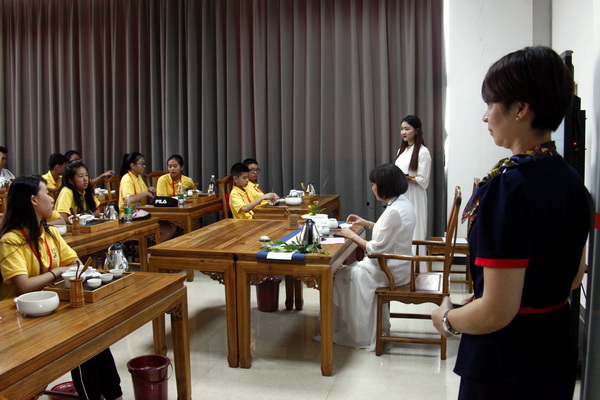 8月4日早上9:00,营员们身着黄色营服整齐地坐在学院学术交流中心一楼的茶艺实训室里,开始了第二天的寻根之旅。