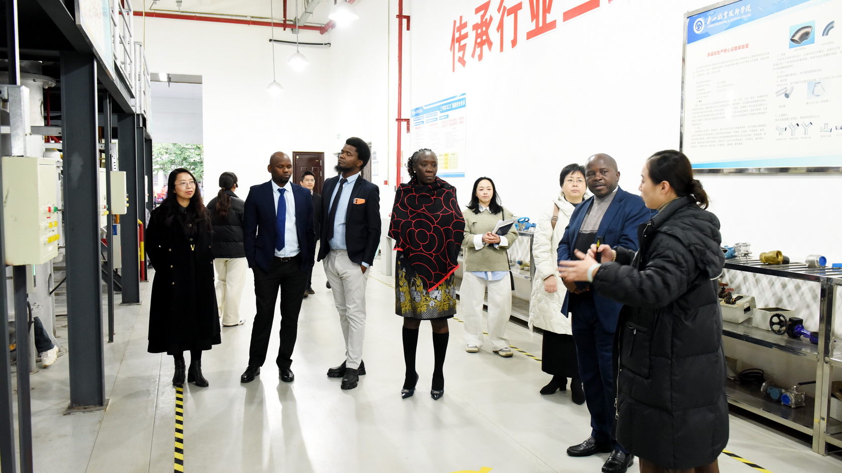 25日下午,在学校党委委员、副校长周芹的陪同下,赞比亚代表团一行饶有兴趣地参观了学校青江武术基地并观摩了留学生武术课堂展示;在嘉州记忆地情馆,了解了乐山的历史沿革和非遗文化;在智慧能源中心,系统了解了beat365水源热泵系统;参观考察了医学实训中心、智能制造协同创新中心、工业机器人系统集成实训中心、光伏新能源虚拟仿真实训中心等实训基地。