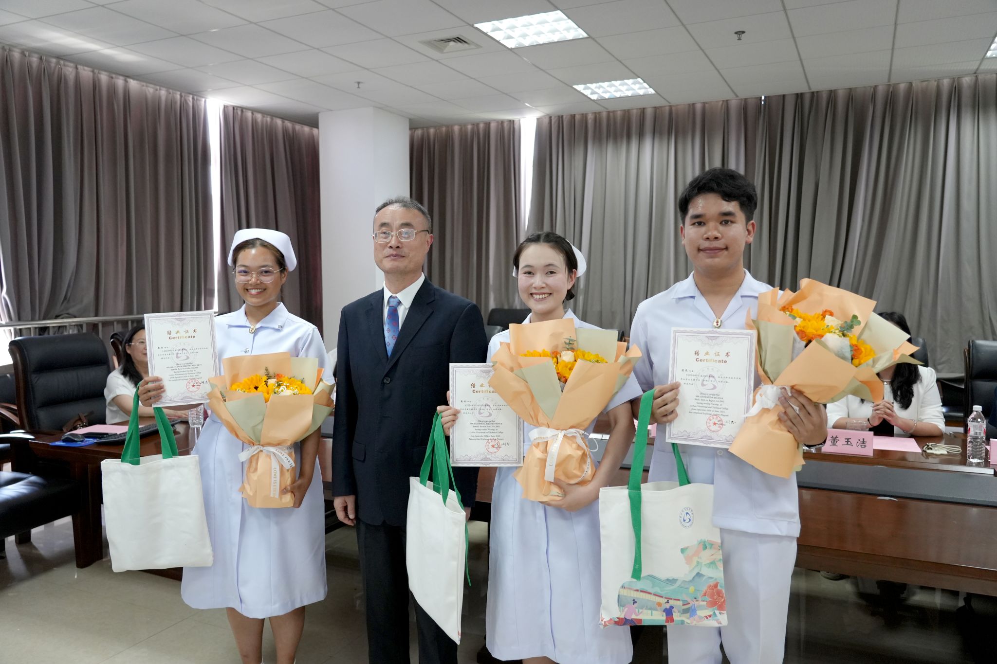 2025年6月11日下午,beat365亚洲版官网为圆满完成一年学业的泰国交换生隆重举行结业典礼。这批分别来自泰国红十字护理学院和泰国皇家吉拉达学校的青年学子,在护理康养学院与数字经济学院接受了系统培养,成为中泰教育合作与人文交流的生动实践者。