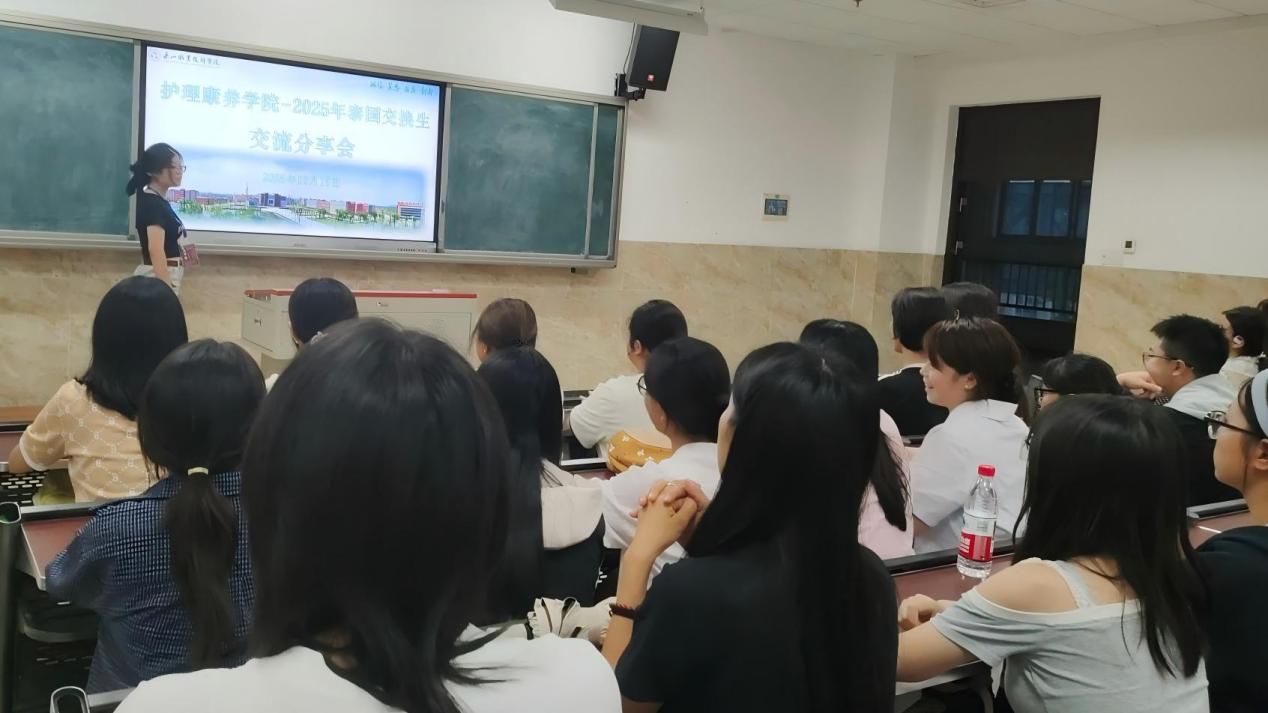 10月16日18:30-19:30,护理康养学院“走进泰国交换生项目,开启国际交流之旅”主题分享会在教学楼2C401教室举行。汇报人王帅岚、陈昕然主讲,24级、高职22级、25级护理专业200余名学生参与,现场座无虚席。