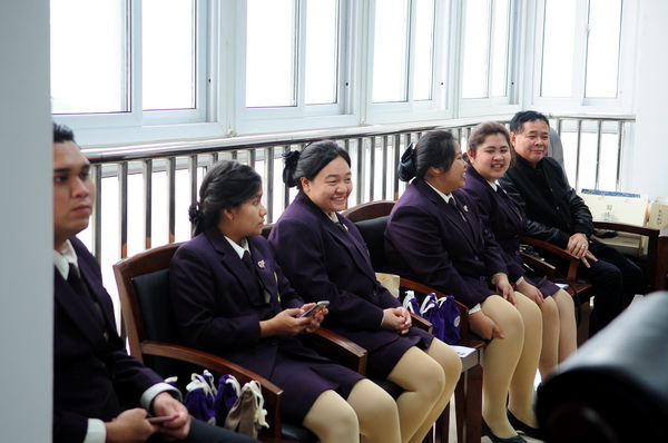 2017年12月6日上午,泰国皇家吉拉达学校昆英校长、职教部主任萝拉珑、职业教育委员会顾问苏冉特、国际部助理部长王文龙一行来我院访问,双方在学院行政楼424会议室举行了交流座谈,学院党委副书记陈芝海,乐山市对外友好交流协会会长谭翙、友城科长杨承毅,学院国际合作处、教务处、旅游系、基础公共课程部负责人,国际合作处相关工作人员及来自泰国皇家吉拉达学校的5名交换生参加了此次交流座谈。会议由党(院)办主任、国际合作处处长黄晓莉主持。 座谈会上,陈芝海代表学院对昆英校长一行到访表示热烈欢迎。他回顾了我院与泰国多所高校及泰国皇家吉拉达学校的合作历史及合作7年来取得的丰硕成果,并介绍了我院搬入新校园后的总体情况。昆英校长就我院多年来对皇家吉拉达学校交换生的关照表示了感谢,介绍了泰国皇家吉拉达学校的教育理念、学制和专业特色等办学情况,并表达了希望与我院结为友好姊妹学校,让双方合作再上新台阶的愿望。乐山市对外友好交流协会会长谭翙对泰国客人来访表示欢迎,并祝愿双方的合作取得圆满成功。