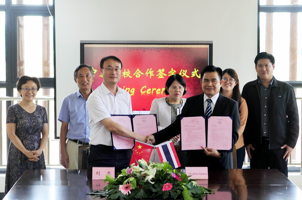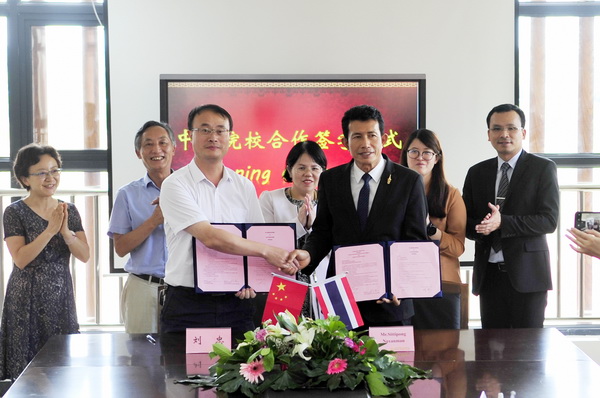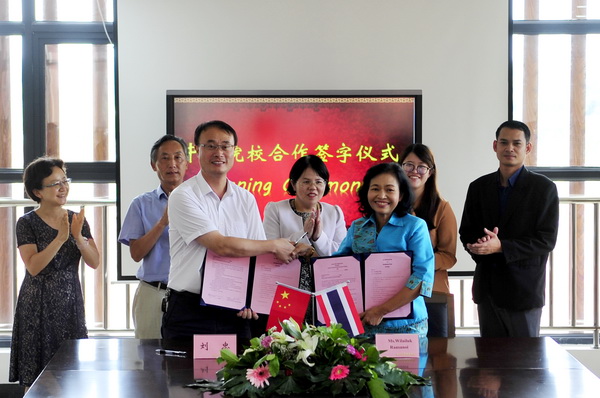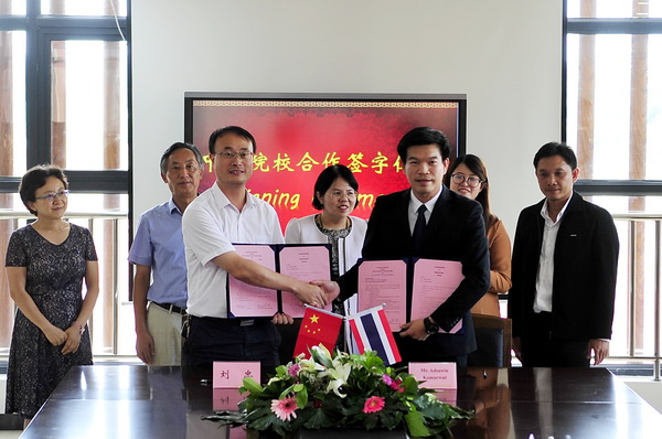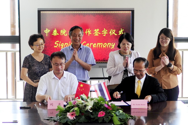 座谈会上,泰国能源技术高校代表团的成员对各自的学院一一进行了介绍,并表达了同beat365亚洲版官网开展光伏新能源、中草药研发等相关专业的教育交流合作愿望,学院新能源工程系主任王丽、药学系主任封家福也分别进行了专业介绍。最后,泰国巴蜀府技术学院、猜亚鹏技术学院、合艾市技术学院、颂职业技术学院和四色菊府技术学院与学院签署了友好合作框架性协议。