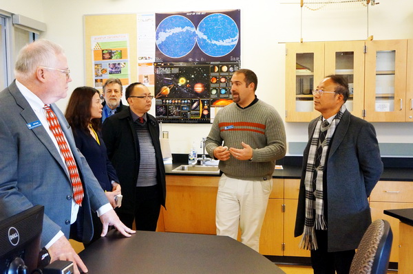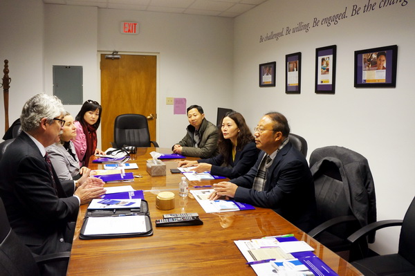 此外,薛建平院长还带队考察了詹姆斯•麦迪逊大学,会见了该校副教务执行长詹姆斯•谢弗并参加座谈。座谈会上双方就开展广泛的合作与交流进行了探讨,并就校际学术交流与合作、高层次人才培养、师资培训、学生深造等领域进行深入交流,双方表示,愿意发挥各自优势,进一步加强交流,推动更多实质性合作项目的开展。