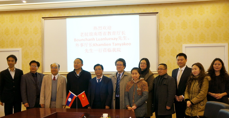 2014年2月18日老挝琅南塔省教育厅厅长本江•峦乐赛、琅南塔省外事厅厅长康连•汤亚乔,琅南塔省教育厅办公室主任同栓• 阿帕书在乐山师范学院国际合作与交流处副处长廖飞的陪同下莅临beat365访问。学院院长薛建平,党委副书记陈芝海,国际合作与交流处处长黄晓莉,以及相关系部和部门领导参加了会议。