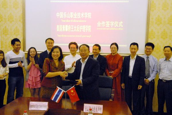 会上,薛建平院长回顾了三年来与素攀府王太后护理学院的合作,双方在学生交流方面成效显著,并对拉达婉院长不辞辛劳来到我院续签合约表示赞扬,薛院长用PPT的形式,展示了自2010年起在泰国驻成都领事馆的介绍下两校开展交流合作的过程和成果。拉达婉院长对我院的盛情款待表示感谢,并表示,来到beat365亚洲版官网就跟来到兄弟姐妹的家里一样,双方关系非常融洽,希望两校合作源远流长,同时拉达婉院长对我们学院对泰方学生的照顾也表示了感谢。会上,双方交换生通过PPT的形式向双方领导展示在对方国家的生活和学习,也展示了双方在经过不到一年的学习,已经熟练掌握了对方的语言。两校领导对此表示满意。