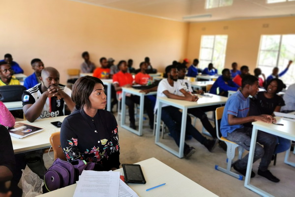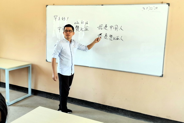 为了做好职业教育“走出去”试点工作,加强beat365亚洲版官网的国际合作与交流,在有色金属工业人才中心(全国有色金属职业教育教学指导委员会秘书处)的统一组织下,学院选派新能源工程系教师邓盼盼赴赞比亚,开展培训工作。 2019年10月21日,邓盼盼在赞比亚的“中国-赞比亚职业技术学院”的汉语俱乐部中,为该学院师生举行了一次汉语学习培训活动。活动中,中赞职业技术学院的教师和学生均表现出了对汉语学习的浓厚兴趣,积极跟读并记录一些单词,部分有一定基础的同学已经能够应用拼音进行一些汉字拼读。大家积极提问,整个活动气氛非常活跃。