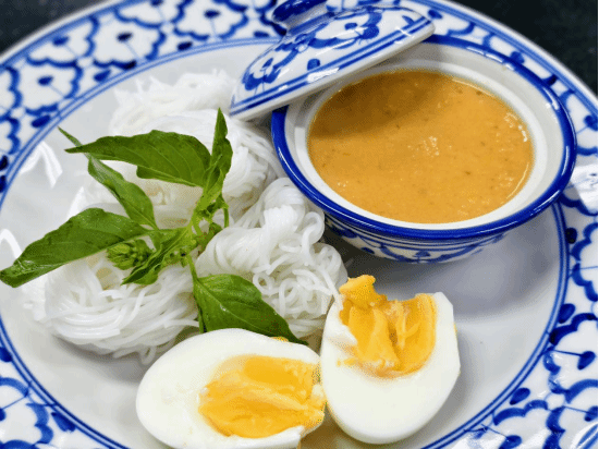 七月十八日,我们再度来到学校,今日的学习任务是制作泰式鱼粉。首先,我们着手制作泰式鱼粉所需的酱汁。大家认真处理着各种香料,独特的香气在空气中弥漫开来。接着,我们将鱼仔细处理干净,与香料一同放入锅中煮制。随着时间的推移,鱼的鲜香逐渐散发。待鱼煮至熟透,我们小心翼翼地捞出,将鱼肉剥下并压成肉泥。随后,我们对锅中的香料进行处理,挑出柠檬叶,将其余香料放入搅拌机打成汁,再倒入鱼泥中充分混合均匀。至此,泰式鱼粉的灵魂酱汁制作完成。我们将提前准备好的米粉和新鲜蔬菜精心摆盘,一碗美味的泰式鱼粉便跃然眼前。食用时,淋上酱汁搅拌均匀,每一口都洋溢着浓郁的泰式风味。