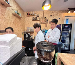 7月18日上午,学习泰式鱼泥酱制作时,老师带来了各种新鲜的海鱼,耐心地教我们如何挑选优质的鱼用于制作鱼泥酱。在清洗和处理鱼的过程中,老师一边示范一边强调卫生和安全要点。处理好鱼后,将其放入锅中煮熟,接着用勺子等工具将鱼肉仔细地压成细腻的泥状。之后,加入蒜末、辣椒末、柠檬汁、鱼露等多种调料,每一种调料的用量老师都精确地告知我们,并且讲解了不同调料对鱼泥酱风味的影响。我们在老师的指导下充分搅拌均匀,让各种味道完美融合。完成后的泰式鱼泥酱色泽诱人,闻起来香气扑鼻,迫不及待地蘸着面包尝了一口,那独特的酸辣咸鲜口感瞬间在口腔中散开,令人回味无穷。下午的泰式柠檬茶和可可奶茶制作课程同样精彩。制作泰式柠檬茶时,先煮好香甜的糖浆备用,用热水冲泡泰式红茶,充分浸泡出浓郁的茶味,接着把西柠洗净切成薄片 ,放入雪克杯中,加入适量冰块,用捣棒用力捶打,让柠檬汁充分释放出来,那清新的柠檬香气瞬间弥漫在空气中。随后加入泡好的红茶汤和糖浆,再加入冰块至刻度线,盖上盖子疯狂摇匀,一杯冰爽可口的泰式柠檬茶就大功告成了,喝上一口,仿佛所有的暑气都消散了。制作可可奶茶时,先在小煮锅中倒入适量热水,放入红茶包煮开后关火,浸泡5分钟,让红茶的味道充分融入水中,拿掉茶包后倒入牛奶,小火慢慢加热,再加入炼乳、淡奶油和可可粉,一边煮一边搅拌,直到茶汤变得浓稠,香气四溢,一杯香浓丝滑的可可奶茶就完成了,入口满满的幸福感。