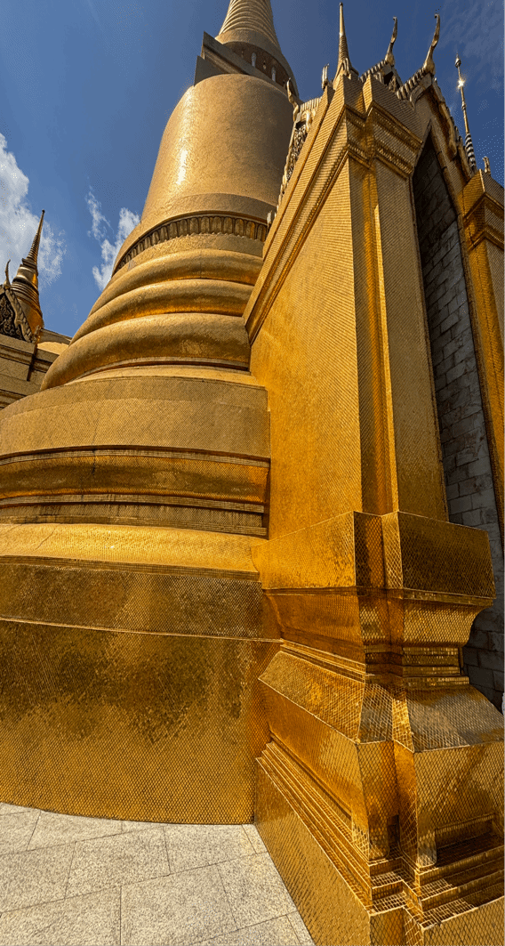 8月11日,周一,恰逢泰国母亲节。我们怀着敬畏之心走进大皇宫,金色的尖顶在阳光下闪耀,仿佛诉说着王朝的过往。夜幕降临时,孔剧的帷幕缓缓拉开,演员们身着华服,面具后是千年的故事在流转,一招一式都浸透着历史的韵味,让人心生赞叹。