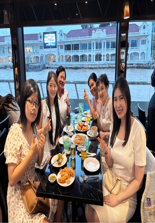 8月15日,周五,上午的血糖测量学习让理论落地生根。午后,湄南河的邮轮载着我们缓缓前行,两岸的风光随波流淌,落日为河水镀上金边,晚风拂面,所有的疲惫都化作了此刻的宁静与舒畅。
