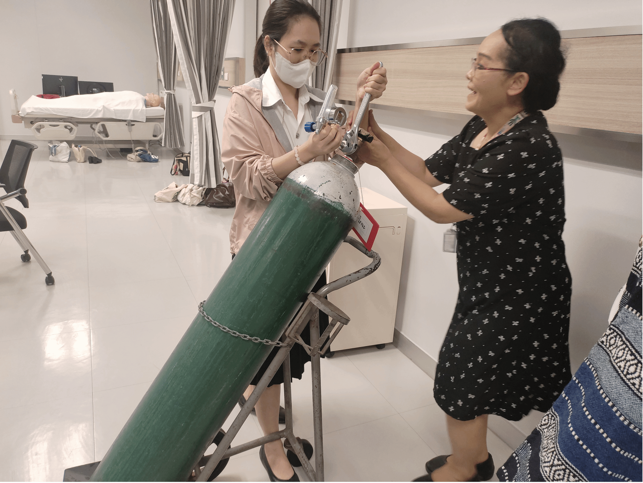 14号一整天我们都在护理实验室,观察泰国同学们如何进行实践操作。她们从基础的护理技能练起,一次次调整动作,力求精准。在实验室里,能感受到大家对护理专业的认真,这种专注练习的氛围,让我也增长了不少见识 。