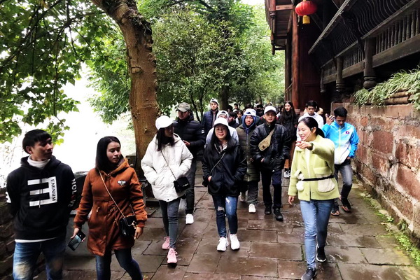 2019年11月7-9日、11月21-23日,应洪雅县教育局邀请,学院组织来自老挝、泰国、塔吉克斯坦、乌兹别克斯坦、蒙古、哈萨克斯坦、越南、土耳其等国家的163名国际学生,在学院国合处、保卫处、学工部、基础公共课程部教师的带领下,分两批参加了为期三天的研学活动。 研学活动期间,国际学生走进最美桌山瓦屋山,通过徒步、乘坐缆车、聆听讲解,加深了对瓦屋山这座四川名山的了解和体验;探访烟雾朦胧的雅女湖,感受如梦如幻的中国山水仙境;深入柳江这座山水古镇,在曾家大院里感受当地历史文化,欣赏中西融合建筑之美。钵钵鸡,香碗等具有农家特色的川味美食让国际学生从感官到味蕾来了一次全方位的洗礼。