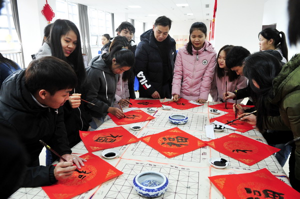 活动分为“春节风俗讲解”、“福到万家”,“红红火火写对联”、“猪福饺子”、“团团圆圆大过年”几个部分,让外籍师生身临其境感受中国农历新年的温暖和热闹。
