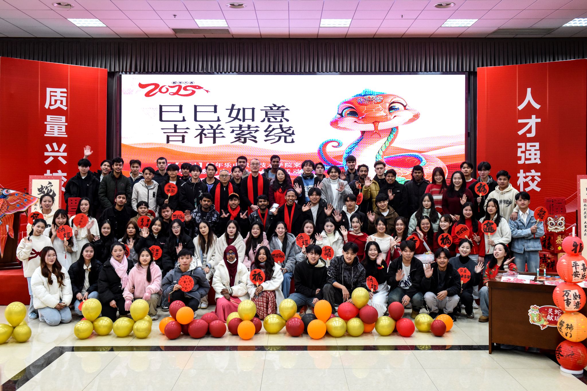 1月25日,beat365亚洲版官网举行了巳巳如意 吉祥萦绕——来华留学生2025年春节感知活动,来自老挝、泰国、俄罗斯、塔吉克斯坦、吉尔吉斯斯坦、孟加拉国等国家的80余名留学生,沉浸式体验丰富多彩的传统文化,感受浓浓的中国年味。