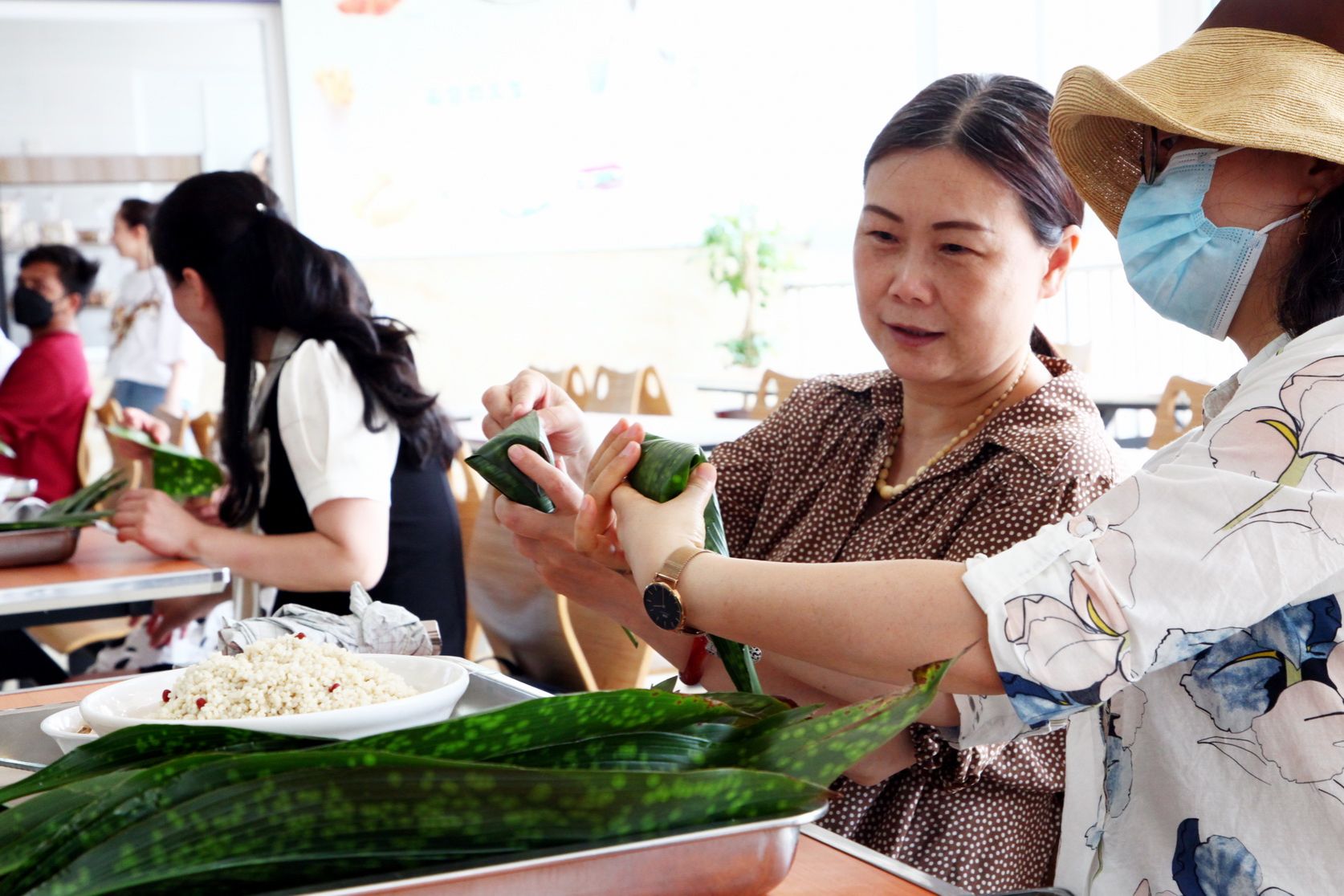 To allow both Chinese and international teachers and students at the college to experience the traditional Chinese culture and the customs of the Dragon Boat Festival, on the afternoon of June 1st, an event titled “Experiencing the Dragon Boat Festival” was held in the college’s first canteen. Organized by the college’s trade union and co-organized by the administrative trade union, the后勤 department, the academic affairs office, and the student affairs department, this event aimed to celebrate the traditional Chinese festival and enhance cultural understanding among participants.