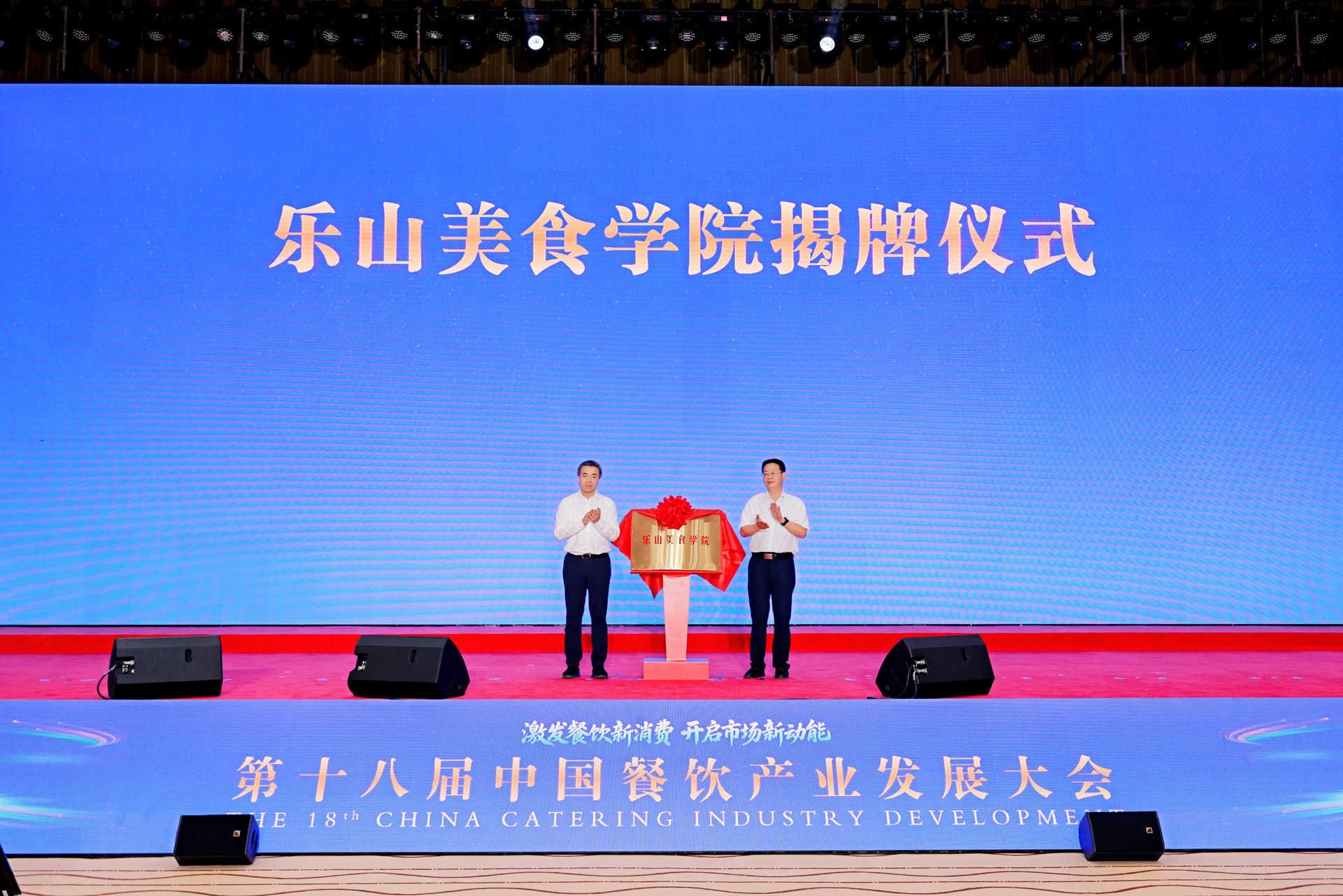 On June 20, the 18th China Catering Industry Development Conference took place in Leshan. At the conference, Leshan Delicacy Culinary Academy, founded by Leshan Vocational and Technical College, was officially inaugurated. Hui Zhaoxu, Secretary of the Party Group and Director of Sichuan Provincial Department of Commerce, and Zhao Yingchun, Deputy Secretary of Leshan Municipal Party Committee and Mayor of Leshan, jointly unveiled the academy. Over a thousand industry elites from national leading catering enterprises, authoritative experts, scholars, and top 100 Chinese catering enterprises convened to witness the launch of Leshan Delicacy Culinary Academy and the new chapter of vocational education empowering industrial development.
