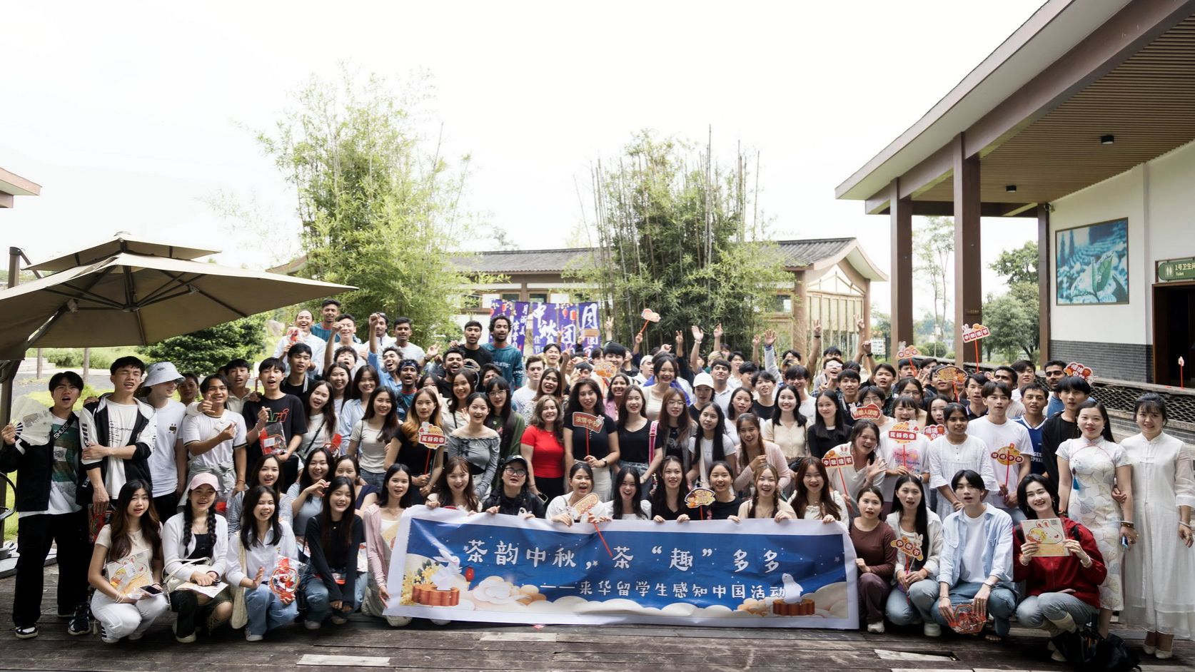 During the Mid-Autumn Festival, the school hosted a "Mid-Autumn Jia'e Tea Valley Cultural Experience Activity" for international students. The event aimed to allow 120 international students from different countries to deeply understand the charm of traditional Chinese culture and experience the profound cultural connotations and unique atmosphere of the Mid-Autumn Festival.