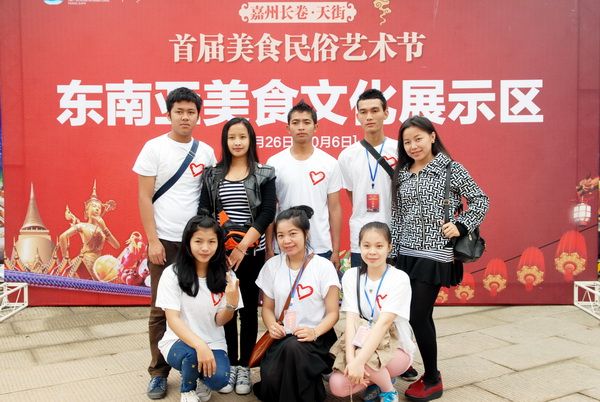 In the Jiazhou Scroll exhibition area, it was easy to spot clusters of exhibition booths from Southeast Asian countries, with numerous merchants from Thailand, Laos, Vietnam, and other nations. Exhibitors speaking Thai, Lao, and other languages added an international flair to the expo, but also made language translation a key issue. Leshan Vocational and Technical College, in its efforts to enhance its educational capabilities and student quality, has long strengthened cooperation and exchanges with international institutions and attracted a large number of Southeast Asian international students from Laos and Thailand. These students, ranging from exchange students to degree-seeking students and from freshmen to seniors, are diligent, honest, and resilient. Some have been studying and living in Leshan for 2 or 3 years and can speak fluent Mandarin, while a few have even mastered the local Leshan dialect. The exhibitors in the Southeast Asian section were in urgent need of such translation talent. Similarly, the young people also needed opportunities to serve society, improve their abilities, and challenge themselves. Therefore, the international students from Leshan Vocational and Technical College gladly accepted this challenge. Through their cooperation with the expo organizing committee, exhibitors, and various participants, the students gained valuable experience, making the expo more lively and orderly, like a beautiful flower blooming in the golden autumn.
