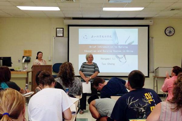 During their stay, they also had the opportunity to participate in the LPN-RN (Licensed Practical Nurse - Registered Nurse) transition course classes, interacted well with the students, and introduced the nursing program at their college and the career development of nurses in China.