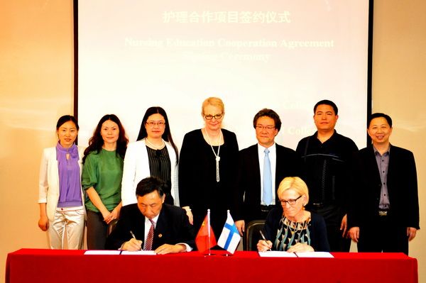 According to the agreement, in 2014, our college will collaborate with Ylivieska Vocational College to introduce Finnish nursing teachers and curricula to specifically train nursing students. After completing the first two years of the Sino-Finnish joint program at our college, students will spend their third year in Finland to study the remaining theoretical courses, undertake internships, and take the Finnish nursing "Competency-Based Qualification" exam to obtain the Finnish nursing qualifications. This will ultimately lead to high-paying employment opportunities in Finland. Additionally, the agreement includes cooperation on training our college’s professional teachers and conducting three-month short-term student exchange programs between the two institutions.