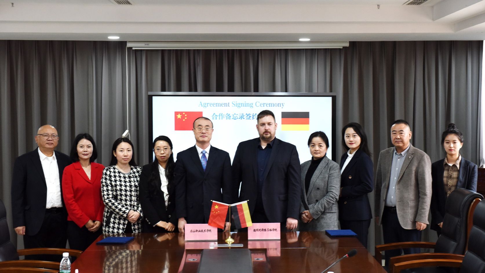 On November 11, 2024, a delegation from German Lichtenberg College, led by President Amadeus Werner, visited Leshan Vocational and Technical College. They held an exchange meeting in conference room 2001 of the Academic Exchange Center and signed a Sino - German nursing education 3 + 0 cooperative education agreement.